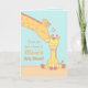 Express thanks to guests for their presence at the baby shower with this cute thank you greeting card! It has a cartoon of mummy giraffe giving a kiss on her baby giraffe who is happily receiving mum's affection. The cute calf has a baby pacifier in its mouth and is wearing diapers. Gender neutral colours of largely yellow and orange which is suited for both baby boy and girl!