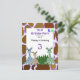 A cute jungle animal birthday invitation. Featuring three cartoon giraffes in blue, toffee brown and green. Customise with all of your party information as desired.