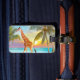 AI generated image of a giraffe walking at the beach during sunset on the front, the back you can easily personalise with your name and address and if you want, you can change the background colour by editing this luggage tag.