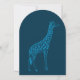 Cute aqua Giraffe on pink background with shades of blue lettering.