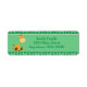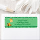 This personalised return address label features a light green background bordered by a dark green jungle leaf pattern. A cute brown and orange baby giraffe sits the left of the template area where you can add your address or other custom text.