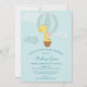 An adorable blue boy baby shower invitation featuring a giraffe in a hot air balloon with cute clouds. This sweet baby shower invite is a super stylish way to welcome your shower guests to a darling baby boys shower.