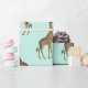 A beautiful roll of wrapping paper, this item features golden giraffes on a mint background. Fashionable and stylish, purchase yours today!