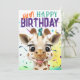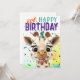 Cute and Funny Giraffe with Colorful Confetti Celebrates a Birthday.