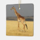 Giraffe full body walking in the grass of Africa. Beautiful spots and tail flowing behind. Majestic animal.