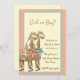 Invite family and friends to the gender reveal of your new baby with this sweet invitation featuring two giraffes ... one with a peach bow and the other in green. Peach and green border with pale yellow background.