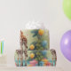 Smiling cartoon giraffe in jungle with balloons. Great design for wrapping presents for kids of any age.