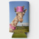 Giraffe in sparkly pink hat seltzer can cooler