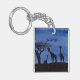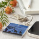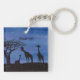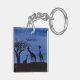 A watercolor painting of a family of giraffes adorns this customisable keychain!