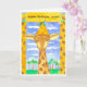 A fun custom name greeting card for a birthday featuring a sweet giraffe in an orange party hat with a calm blue sky with clouds and a peaceful green landscape illustrated with watercolor. You can customise the text to fit your needs.