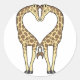 The shape of a heart created by the curve of these friendly giraffe's intertwined necks.