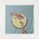 A funny cartoon style design for anyone who loves giraffes. This illustration has the text, I'M A BIG FAN OF GIRAFFES. A giraffe is cooling off from the hot savannah sun, by using a helicopter as a fan. A cute giraffe design for animal lovers. Also a fun design for kids who loves helicopters.