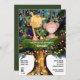 An adorable watercolor illustration of a baby giraffe and a baby monkey hanging their paws over the top of a moss covered branch in a big tree that they are sitting in which has faux sparkling fireflies and string lights in it. They are surrounded by hanging vines and a dark forest green background. The black templates may be personalised to suit your requirements. Perfect for safari; jungle and zoo animal themed baby shower parties.