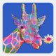 A unique sticker of a colourful giraffe with a flower for fun and happy occasions.