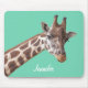 Giraffe on Teal Green Personalised Name Mouse Pad