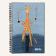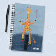 Cute kid spiral notebook featuring a cartoon acrobat giraffe riding a unicycle while spinning plates to practice their handwriting . Personalize it with a name . Choose the type of paper , the type of cover (soft or hard) and the rings colors .
