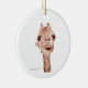 A charming watercolor giraffe design graces this ornament, bringing a touch of gentle whimsy to any space. The giraffe is painted in soft, blended tones of golden yellow, warm brown, and subtle splashes of orange, with delicate brushstrokes that highlight its graceful neck and expressive eyes. The watercolor texture gives the piece a light, airy feel, as if it were gently washed onto the surface. Perfect for nature lovers or animal enthusiasts, this ornament adds a playful yet elegant accent to holiday décor or year-round display.
