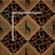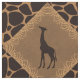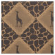 Alternating squares set on a diagonal of a deep chocolate brown giraffe silhouette set in a medium brown faux grassy texture diamond shape bordered in pattern of tall blades of grass. Alternating pattern with a dark-chocolate brown (almost black) and tan giraffe animal print background.