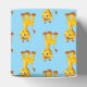 Party favour box shown in light blue with a cute cartoon giraffe print.
