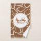 A fun and playful pickleball towel design features a stylish brown and white giraffe skin pattern background, with three text lines for your name and monogram in bold brown text for a look that is simple and stylish, yet trendy. Makes the perfect gift for Christmas, birthday, Mother's Day, Father's Day, graduation, and more.