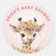 Giraffe Pink Baby Girl Shower Sprinkle Wild Jungle Classic Round Sticker
