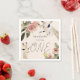 This cute girl's 1st/first birthday paper napkin features a blush pink background with giraffes with flowers in pink, a butterfly and greenery. Personalize it for your needs. You can find more giraffe products at my store.