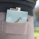 6 oz. blue vinyl-wrapped flask with an image of a giraffe running. See matching paper plate, shot glass and coasters. See the entire Safari Flask collection in the FOOD/BEV | Dishes section. Note: The front, unopened display option was photographed by Zazzle with a slight tilt, such that the image appears off centre. The front, opened display option, however, was photographed correctly. Here the image is centred. The image is also centred in the “in situ” display option.