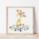 Giraffe, Safari, Purple Flowers, Gender Neutral Poster