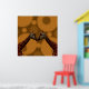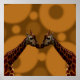 Pictured on a brown circular background are two identical Giraffes