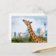 One of Taronga zoo's Giraffe with Sydney city skyline to the rear. New South Wales, Australia.