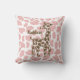 Pink and brown giraffe and spotted print pillow design with custom name or monogram as preferred.