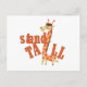 A cute giraffe of tan, brown, and orange with orange text that reads Stand Tall on T-shirts, bodysuits, bibs, mugs, blankets, cards, stickers, bags, magnets, and much more!
