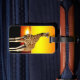 Featured on a golden yellow background is a Giraffe in a dimensional art design.