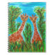 Playful painting of two giraffes surrounded by lush greenery. A colourful, lighthearted design that brings warmth and personality to your everyday notes.