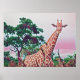 Giraffe Watercolor in Reds Orange and Green Poster
