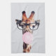 Giraffe Wearing Glasses Blowing Pink Bubble gum Tea Towel