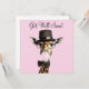 Giraffe wearing glasses, a top hat and blowing a pink bubble gum. Get Well Soon greeting