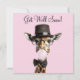 Giraffe wearing glasses, top hat, gum Get Well