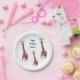 Party design for wildlife lovers featuring three giraffes and ready to personalise with a name. This design was created from my original giraffe glass painting. © Annabel Potter.