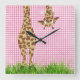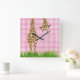 Giraffe With Daisy on Pink Gingham Square Wall Clock