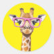 Giraffe with Pink Glasses Yellow Backgrad. Sticker