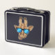 This is a standard metal lunchbox that appears to work just fine. We designed this box ourselves with an uploaded photo and custom text on the front and back. It looks absolutely beautiful except the front of the lunchbox is not centered like it shows in the photo. The print borders don't align with the inset flat part of the box where the preview photo online showed it perfectly centered in there. The back looks nice and centered though.