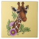 Giraffe Yellow Portrait Flowers Tile