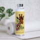 Giraffe Yellow Portrait Flowers Water Bottle