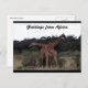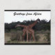 Scene of two giraffe fighting with crossed necks in the Masai Mara, Kenya. Fully customisable postcard.