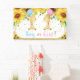 Cute giraffes sunflower floral gender reveal backdrop banner decoration. Matching items available in store! (c) The Happy Cat Studio.