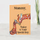 Sweet picture of a mama giraffe and her baby, rubbing noses, is featured on this Mother's Day greeting card. Front of card reads, "Mummy, Today Is Your Special Day.", and inside of card reads, "Thank-you for taking care of me and for all your Love. Happy Mother's Day!". A wonderful card for a small child to give Mum on Mother's Day!