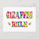 A giraffe lover can show their love for giraffes with this colourful design saying - Giraffes Rule. Makes a great gift.