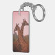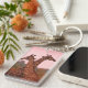 Giraffes standing in mopani trees with pink sky key ring