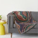 A quality printed throw has its advantages. This is a much finer weave throw than its loopier cousins, and though lighter, it is worth the investment for custom room accessorizing. The back is much prettier than the typical brown, and the fringe on the long sides very vivid, the selvage nicely done. Before photographing, I washed the throw in cold water, delicate, with a thicker woven throw the same size. On tumble dry low, this throw was dry in half the time as the other. This is a very practical quality if you use throws for furniture covers or to wrap up in frequently. The sleekness of the fabric makes it a great layer for accenting or protecting without the feeling of sitting on too much stuff. Perfect for napping or when you feel a light chill coming on. The color printing is beautiful and on this fabric, matched the design and color of my Photoshop image. This is an advantage for blending room fabrics and colors. The fringe on the short sides prints the colors from the design image and therefore varies from the side fringe. I streaked a white fractal line through the plaid pattern to give the illusion of weaving. This printed as crisp as an illusory thread, and put some white in the short side fringe, showing another advantage of print vs loomed- for artistic purposes, line lines, detail, and color integrity can be planned and preserved. My loomed throws have color limitations and more of a needlepoint texture. Print throws reproduce an exact image. The throw felt a little stiff straight out of the package, but this went away in the first delicate wash. Of course I searched the wash water for ink or bleeding and there was none.